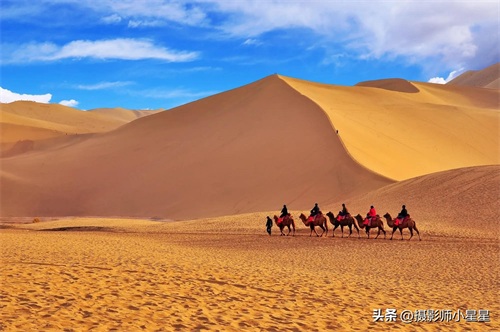 敦煌,这座古老而神秘的城市,当阳光洒落在广袤的大漠上,金黄色的沙粒闪烁着耀眼的光芒,仿佛是大自然精心铺设的金色地毯。