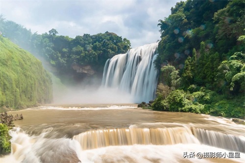 黄果树瀑布在八月雨季的衬托下更显雄浑,瀑布似银河倾泻而下,水汽上升,形成轻纱般的雾气。这里是大自然力量的展示,相机和手机拍下的,尽是飞流直下的豪迈。