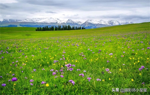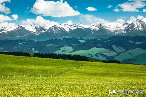 八月的新疆伊犁,宛如一幅绚丽多彩的画卷,在这片广袤的大地上缓缓展开。远处那巍峨的天山山脉,犹如一位威武的将军,守护着这片神奇的土地。山脚下,草原如绿色的海洋,连绵不绝,蔚为壮观。