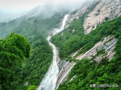 那飞泻而下的水流,如银河倾泻,声若雷鸣,震撼着每一个前来观赏的游子的心灵。站在观瀑台上,只见水汽蒸腾,瀑帘悬挂,仿佛置身于一个清凉的世界。那些被水雾滋润的空气,带着丝丝凉意,让人顿感清爽宜人。