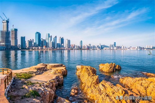 八月的青岛,海风带着凉爽的气息轻拂过岸边,潮水拍打着礁石发出轻柔的哗哗声。阳光穿透云层,将金色的暖意撒在这片蔚蓝之上。