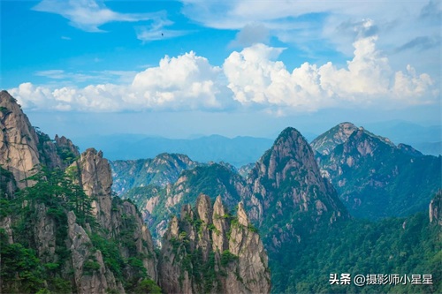 八月,黄山,这座天下闻名的仙山,在盛夏的时节里,展现出了它独特的韵味。山峦叠嶂,云雾缭绕,仿佛是大自然精心绘制的一幅水墨画卷。