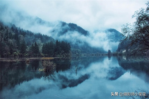 在八月的盛夏,九寨沟如一位穿着霓裳羽衣的仙女,静谧而神秘。晨雾缭绕,阳光穿透薄雾,洒在湖面上。