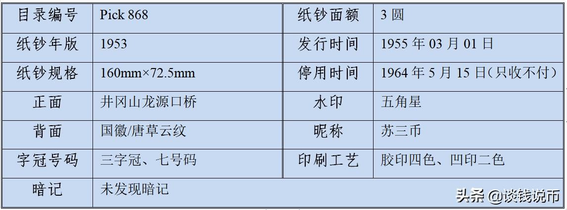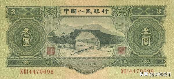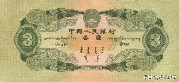 叁圆券1955年3月1日开始发行流通,采用特2号水印纸,由苏联代为印刷。