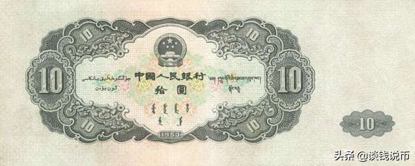 拾圆券是第二套人民币纸币中诞生最晚的面额,1957年12月1日才发行流通。比其它面额整整晚了两年零九个月。这种纸币主色调为黑色,票幅尺寸很大,正面图案左侧为国徽水印留出了面积很大的留白,所以在收藏领域经常被称做“大黑拾”或“大白边”。