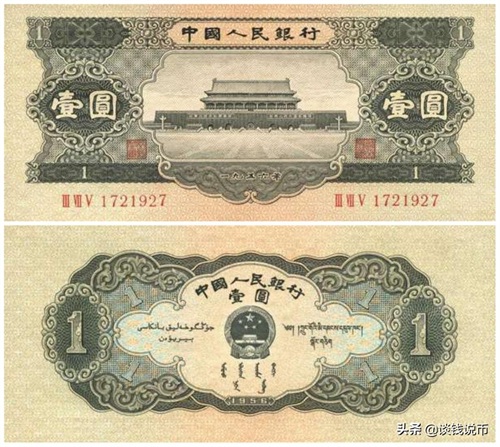 这两种壹圆券,是各套人民币中同一面额发生版别变化最明显的,不但票面颜色完全不同,而且正面背面的图案设计也有明显区别。这样大幅度的设计修改,在人民币的历史上是绝无仅有的一例。