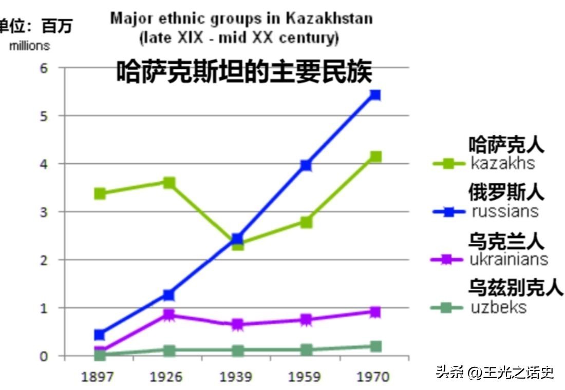 1992年,哈萨克斯坦独立之后,全国的哈萨克族人口只占40%左右,而第二大民族俄罗斯则占到38%,且控制了主要经济部门,他们依旧认同俄罗斯而非哈萨克斯坦。然而因为他们的存在,哈萨克人根本无法形成主体民族,正是为了稀释俄罗斯族的比例,才推出了回归历史祖国运动。