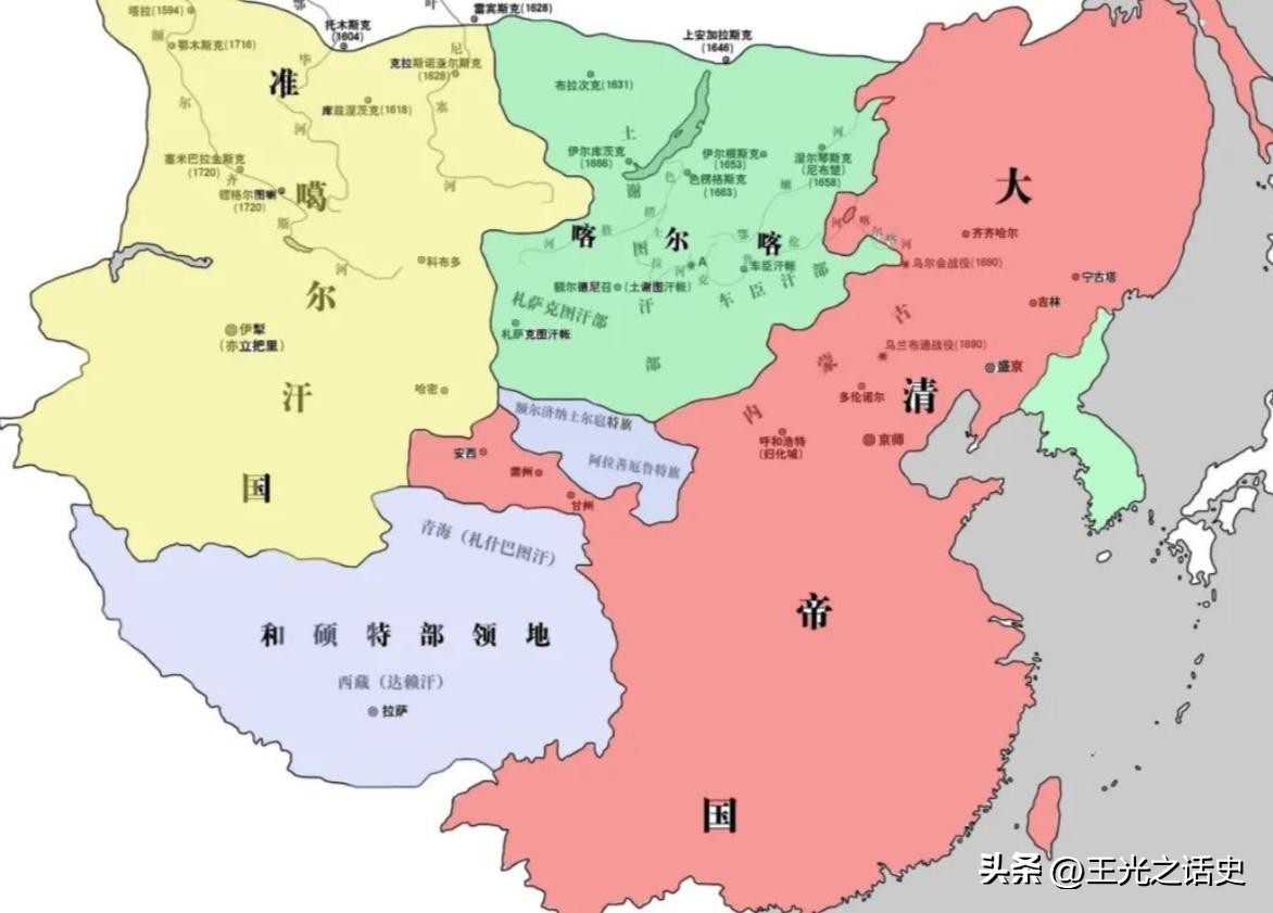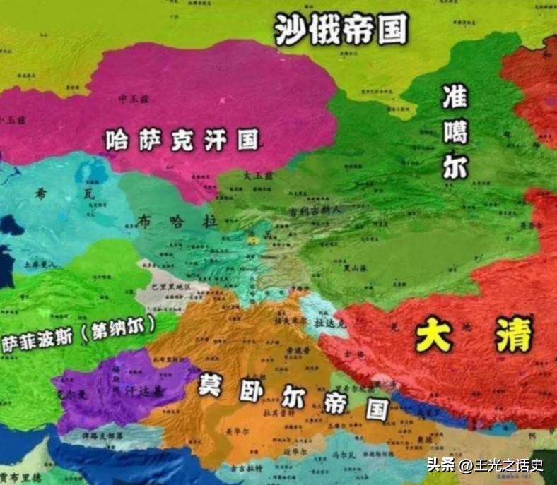 历史地看,平定准噶尔之乱是清朝的立国之战,延续了康雍乾三朝,也彻底改变了中亚和新疆的地缘格局。当时的哈萨克汗国夹在来势汹汹的俄罗斯人和穷凶极恶的准噶尔,那叫一个左右为难,被压得无法喘息,只能寻求他人的庇护,1731年,西边的小玉兹和中玉兹率先拜了沙俄为老大,而东边的大玉兹则被准噶尔所吞并,在1755年寻求清王朝的保护。