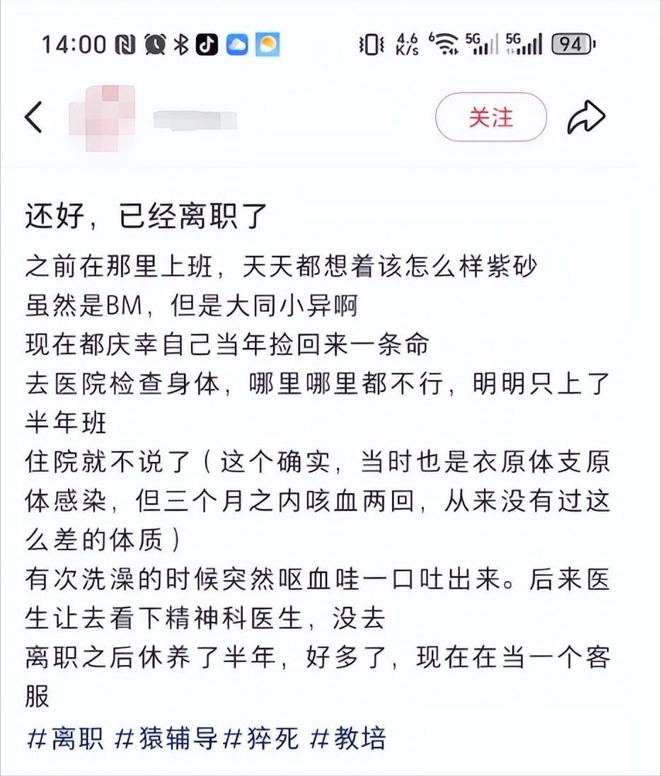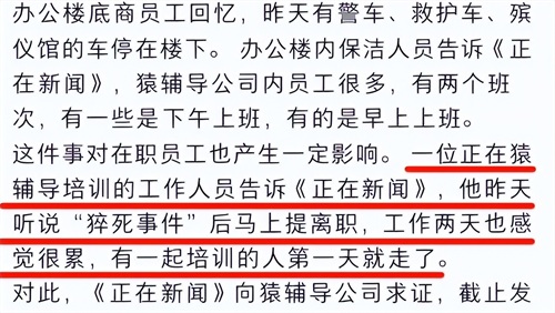 在听说猿辅导的“猝死事件”之后,就有员工立马提出了离职,还有一位刚刚来猿辅导工作两天的新人也感觉很累,直接就和第一天来培训的同事走了。