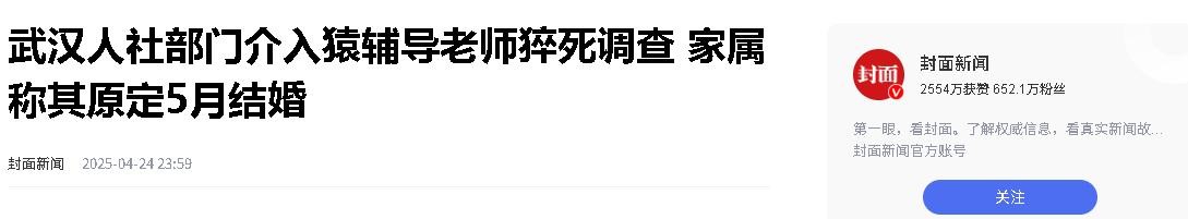 封面新闻:武汉人社部门介入猿辅导老师猝死调查 家属称其原定5月结婚