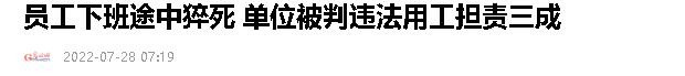 光明网:员工下班途中猝死 单位被判违法用工担责三成