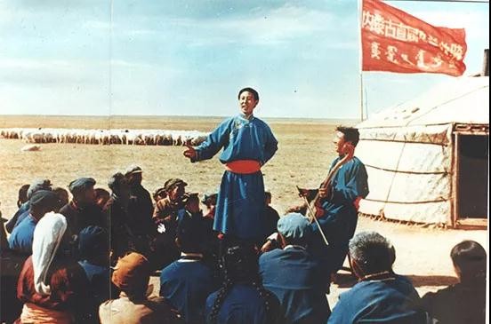 新中国成立前,内蒙古为数不多的民间艺人为王府所用,普通百姓难以欣赏到歌舞。新中国诞生之初,这里的群众文化生活也极为单调,没有书籍,没有广播,各旗县文化馆组织的农牧民业余文艺宣传队人少力弱,无法承担到地广人稀的农牧区演出的重任。文化匮乏的生活,如同没有雨露滋润的牧场,不见生机。