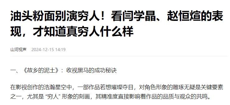 以上信息均来源于山河视声-2024-12-15-油头粉面别演穷人!看闫学晶、赵恒煊的表现,才知道真穷人什么样