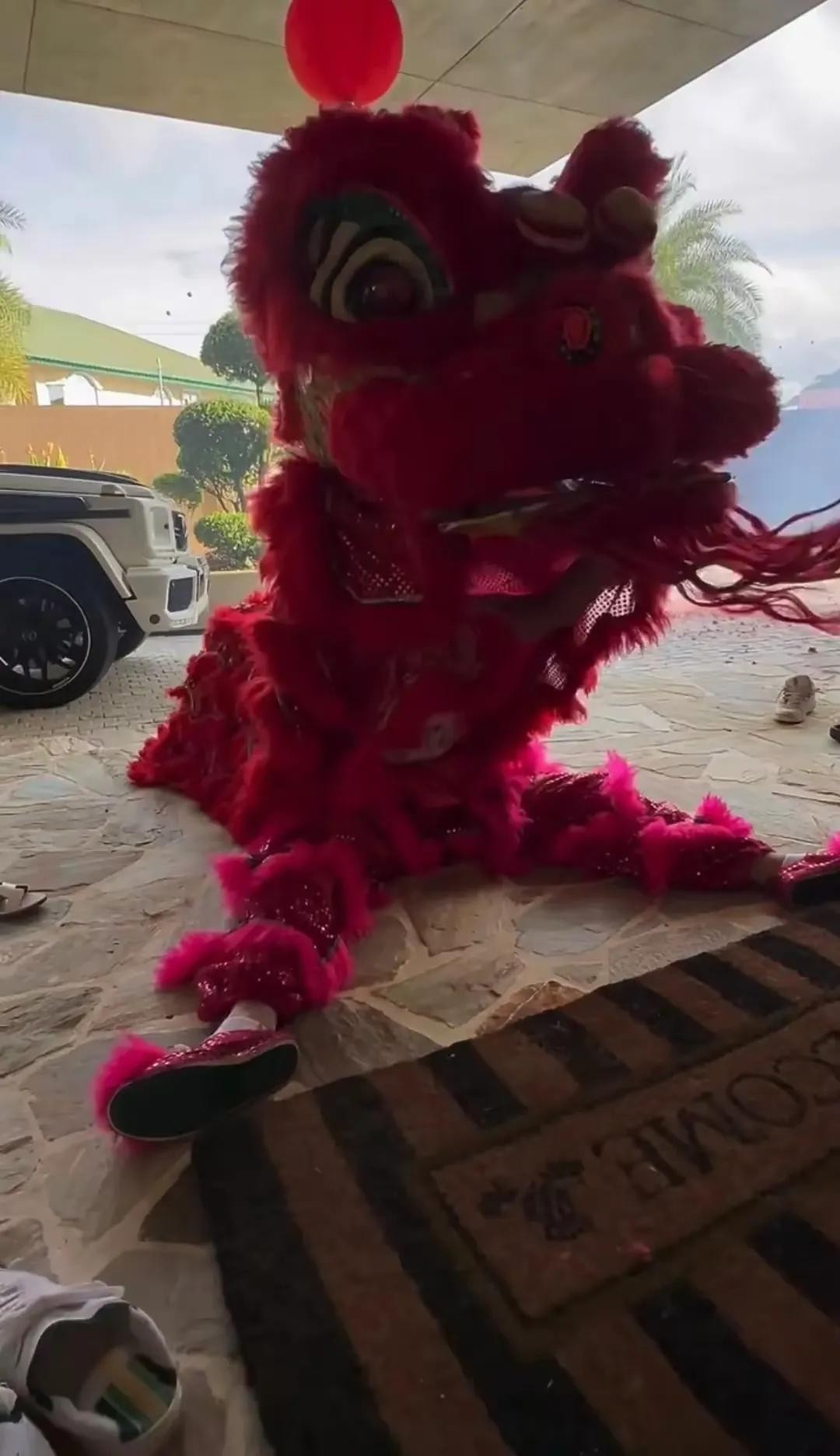 春节嘛,肯定少不了各种热热闹闹的活动。吴尊在门口把鞭炮点着了,噼里啪啦响个不停,过年的氛围一下子就有了。紧接着,Max就开始舞狮啦。他从大门走进玄关,那舞狮的动作还挺像那么回事儿的,一看就是练过。