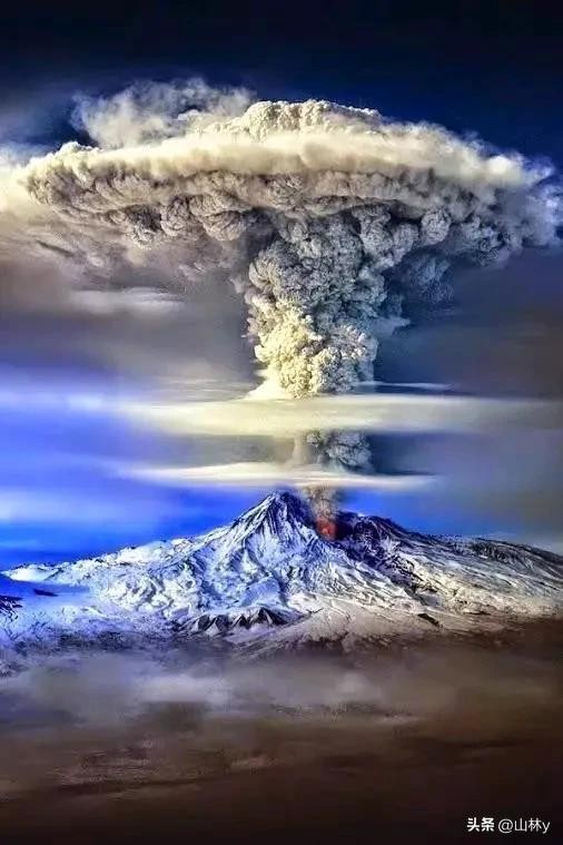 火山喷发堆积的蘑菇云!