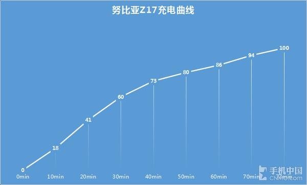 据了解,高通QC4+和上一代比有了质的飞跃。其采用双路并行充电模式,能够做到智能选择充电电路,相比QC3.0充电速度提升了足足20%。而且,高通QC4+还加入了台阶式充电方式,可以有效降低电池发热,从而延长电池寿命,同时让手机充电温度控制在理想范围内。努比亚Z17的手机端支持该技术,但目前适配器还没有更新升级,但已经能感受到其充电速度的惊人。经过测试,该机从0充到100%只需要77分钟,半小时就能充6成电量,不得不说很给力。