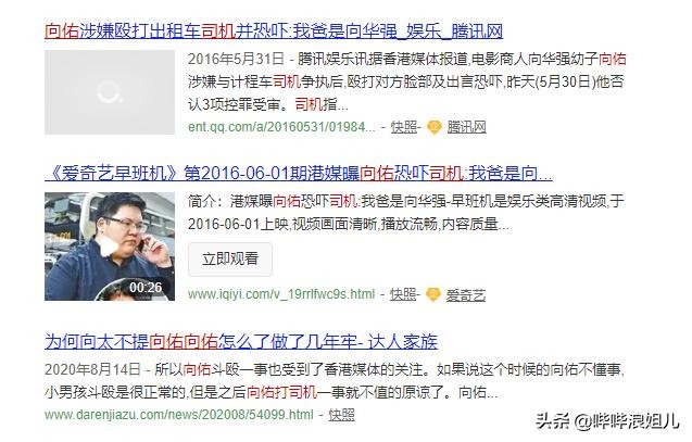 2015年,港媒爆出向佑因为殴打的士司机被告上法庭,这位的士司机是新手,对路线并不是特别熟悉,所以开得相对慢了一些