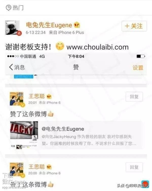 虽然王思聪不敢站队,却默默地在这条微博下点了赞