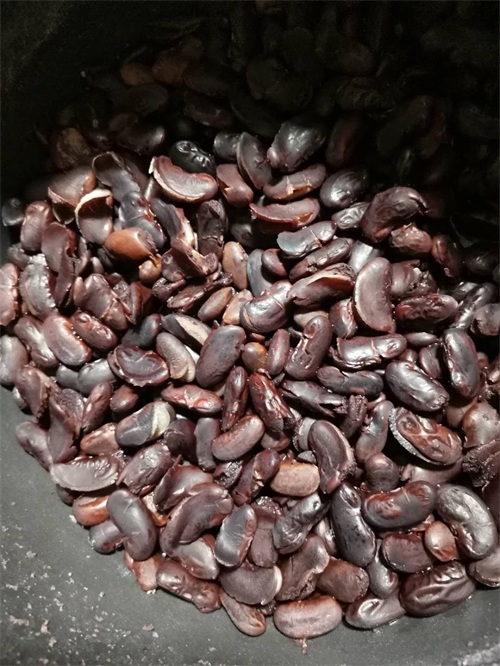 泡好的红芸豆也需要加工一下,捞出红芸豆,放在电压力锅里,加入清水,高度没过豆子高出一指节就好,按下煮豆键,OK!