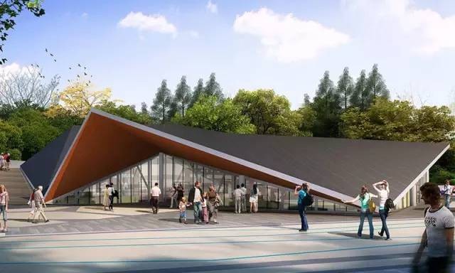 华夏馆:华夏馆是园博会的主展馆,选取中国传统大屋顶建筑最典型的造型元素——宇,通过对传统中国宇的组合重构,凸显中国建筑如翚斯 飞的传统文化精神,运用现代材料和生态技术,构筑具有前瞻性的生态 馆和百姓园博互动场所。