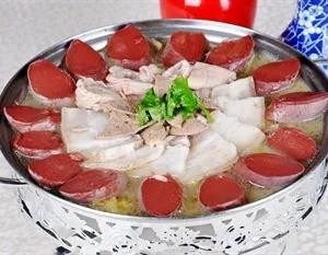 选用的白肉血肠,加上制作精细、调料味美所以当家菜白肉血肠自然是做到了白肉肥而不腻、肉烂醇香、血肠明亮、鲜美细嫩;吃的时候配以韭菜花、豆腐乳、辣椒油、蒜泥等佐料,更加醇香鲜嫩,脍炙人口