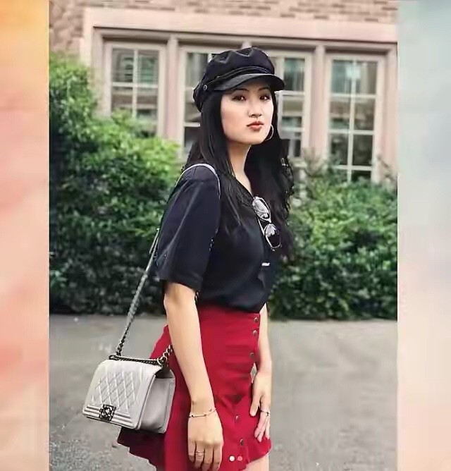 姚安娜是有名的学霸,过去也是长期在国外留学,这张就是在校园内拍摄的。看上去十分的青涩,更带有几分青涩。上半身穿着黑色的内衬,下半身穿着红色的包臀裙,特意将衣摆塞到裙子当中,提高腰线。尤其是用金属纽扣装点,也有很好装饰作用,更带有几分的俏皮。身上背着一款浅色链条包包,头上戴着黑色贝雷帽,时髦气息相当浓厚。