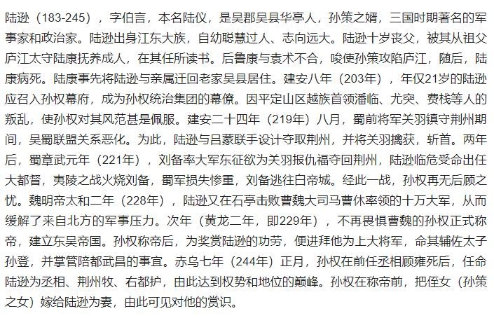 虽然后来孙权为了缓和两家的关系,把兄长孙策的长女嫁给了陆逊。