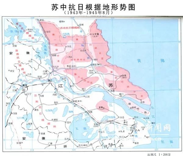 至7月,苏中抗日根据地有县级政权18个,面积达2.3万平方公里,人口825万。