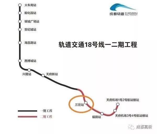 18号线三岔站位于空港新区绛溪南组团,为新区核心区CBD,紧邻三岔湖、绛溪河生态区,与天府国际机场仅两站之隔。