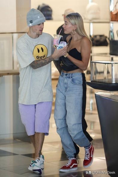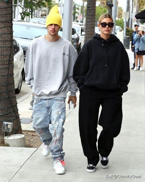 情侣穿搭重点不用多,像比伯和海莉一样都穿上白鞋就很好看了!
