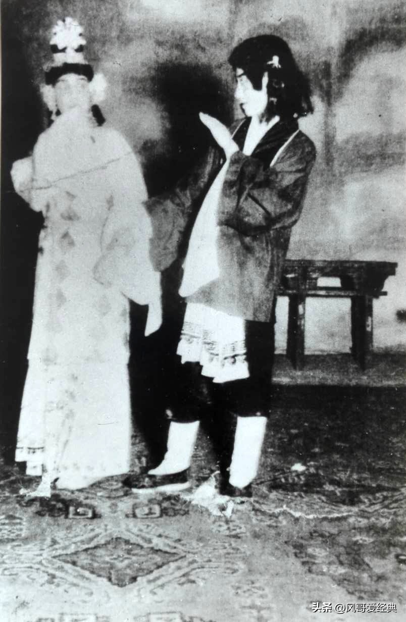 袁菁珍藏的照片:袁世海早年与阎世善合演《牛郎织女》,袁世海扮演织女