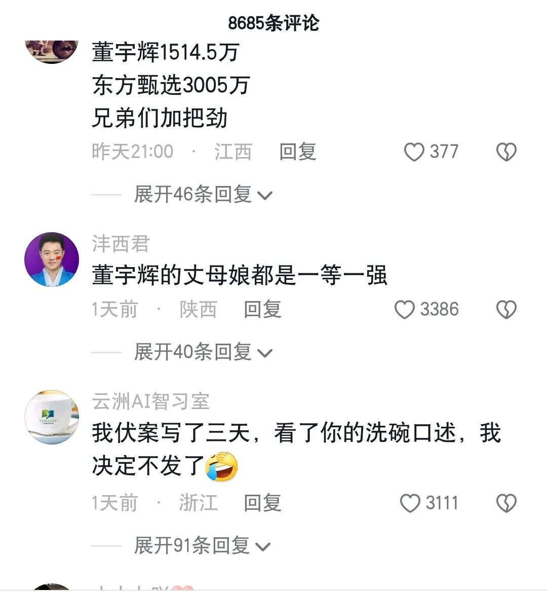 董宇辉听到丈母娘粉们的喊话后,也表达了自己的感激之情。他表示,丈母娘们的支持和鼓励是他前进的动力,他一定会继续努力,让自己更加优秀,让丈母娘们更加满意。