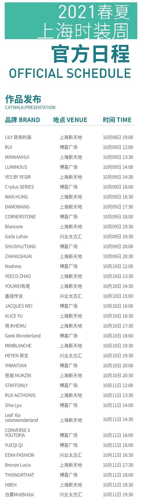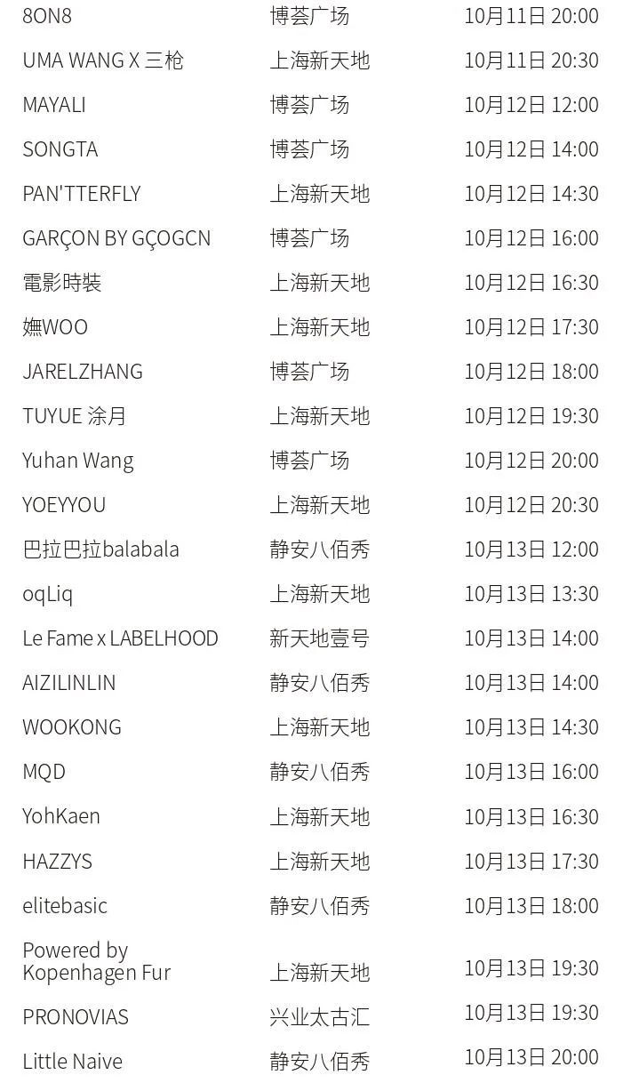 2021春夏上海时装周10月8日起来袭。除了各品牌大秀、商贸展会,另有时尚主题等活动。官方日程详见↓