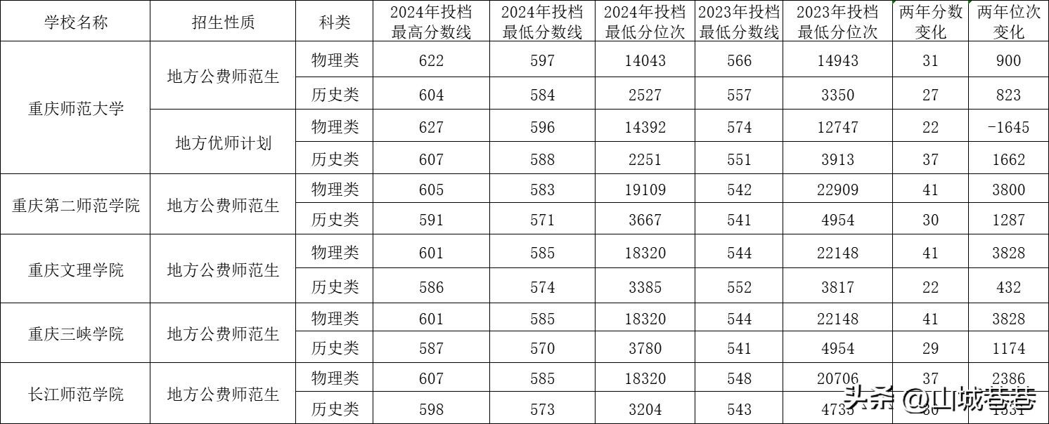 2024年重庆地方公费师范生投档分数线出炉,录取分数、位次双上涨
