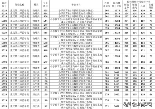 重庆第二师范学院地方公费师范生物理类投档分数线在605-583分,最高的是定向江津就业605分,其次是定向合川就业603分,最低的是定向巫山就业(面向零就业家庭、城乡低保家庭、已脱贫户家庭)583分,最低分位次19109.