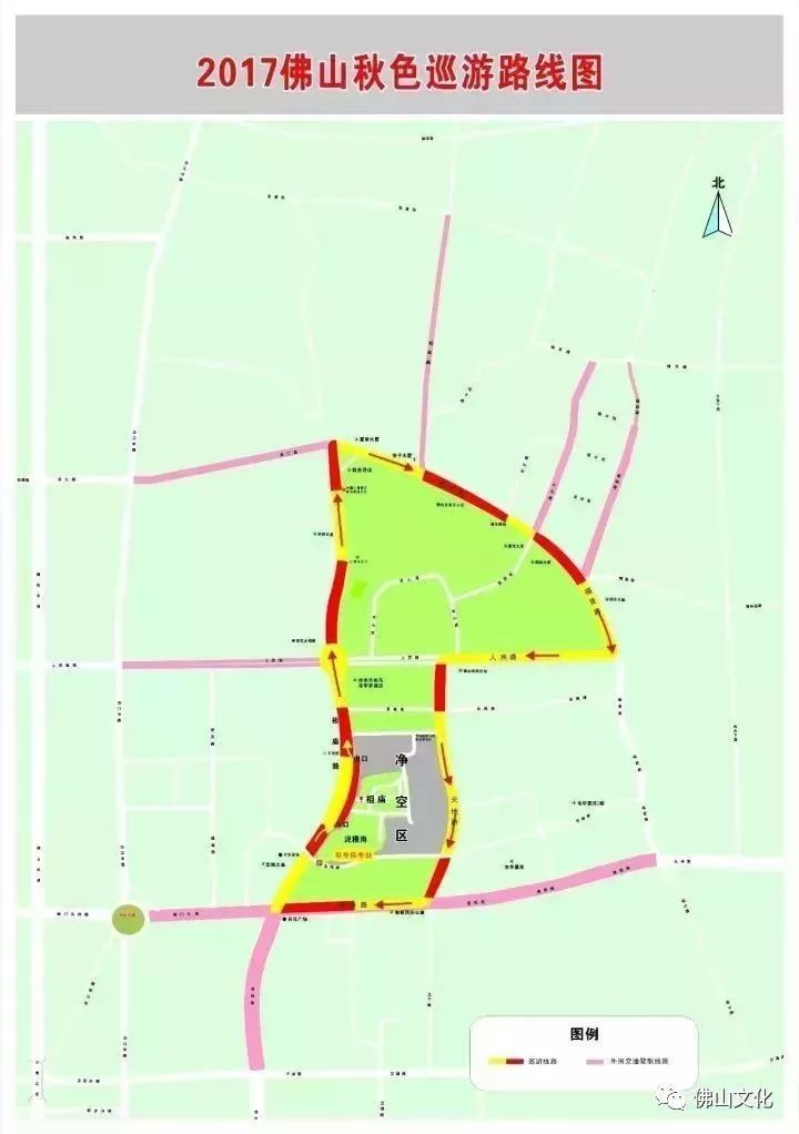巡游线路:从祖庙牌坊广场出发北行,进入祖庙路—琼花大剧院路口(定点表演1)—旋宫路口(定点表演2)—莲花路—福贤路(福升大厦前路口:定点表演3)—人民路—天地路(天地路与良缘路交叉路口:定点表演4)—建新路—百花广场十字路口(定点表演5)—祖庙路—祖庙结束,全程约3.5公里。