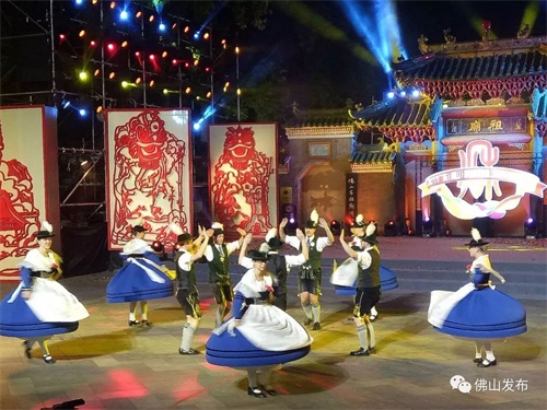 特有异域风情的舞蹈《巴伐利亚传统舞蹈》伴着轻快的音乐出场。据了解,德国因戈尔施塔特市是佛山友好城市,今晚他们首次派出格罗芬传统舞蹈团表演拍鞋舞。舞蹈源于19世纪中叶,是巴伐利亚州最有特色的表演形式之一。
