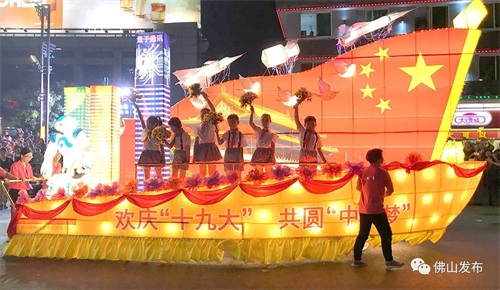 色彩绚丽的彩车正是秋色巡游的“例牌”和“大牌”,今年除了“佛山韵律”“华彩秋景”等传统彩车外,佛山市民间艺术研究社还特别设计制作了“欢庆十九大”、“粤港澳大湾区”等融入时代元素的主题彩车,总共八大彩车惊艳亮相。