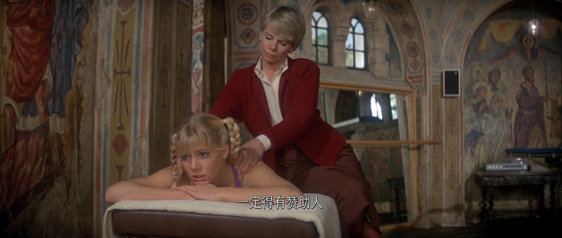 左边是邦女郎梅琳娜,由卡洛·波桂饰演,一个为了复仇选择和邦德合作的邦女郎。