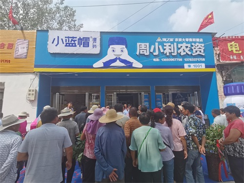 小蓝帽品牌店全国首家店周小利农资,位处驻马店市汝南县梁祝镇,创始人周小利说,“卖小蓝帽增产药,解决了我10多年怕串货的心病”,“开业半年农户来买药直接点名要小蓝帽。过罢年四五天卖了万把亩地!”