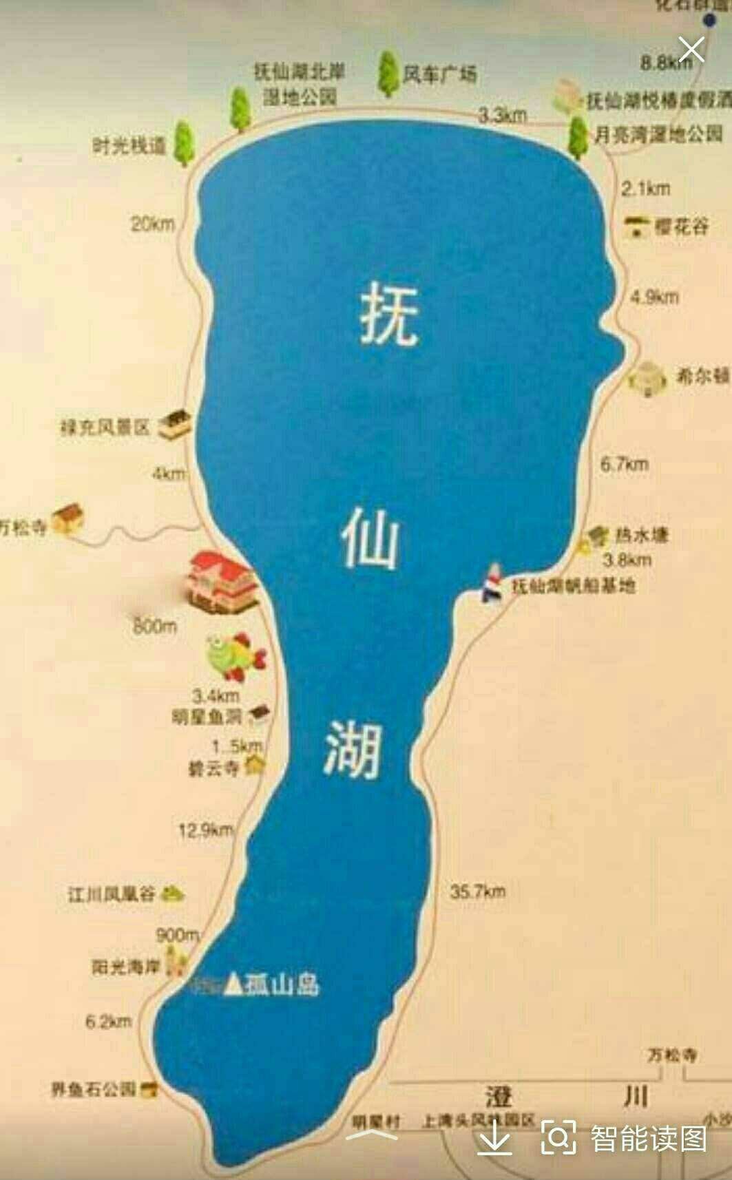抚仙湖湖面海拔1721米,最大水深157米。是云南省的第三大湖。