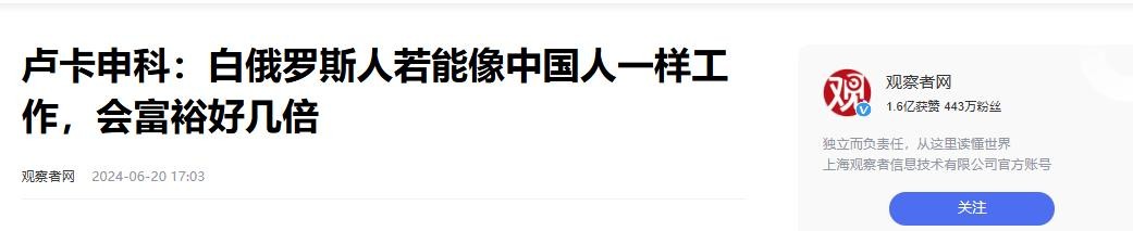 白俄总统卢卡申科:我们最大的错误,就是没听中国的建议和经验
