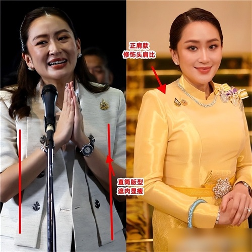 佩通坦与前总理英拉同属同一派系,她们二人虽然都是女性领导人,但是两人的风格还是有一些差异的,比如佩通坦的穿衣风格更符合当下的流行趋势,而英拉的穿搭风格则更接近于传统的中年女性装扮, 佩通坦的时尚感更加突出,年轻气质,同时也让她的魅力得到了更好地展现。