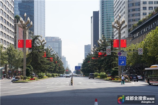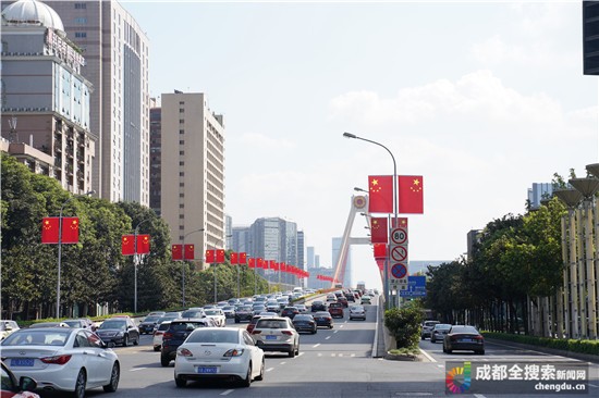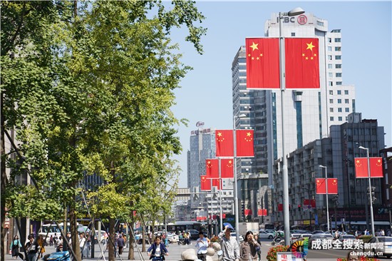 成都全搜索新闻网(记者 王玲)9月25日报道记者今天从成都市城管委获悉,为热烈庆祝中华人民共和国成立70周年,市城管委牵头组织在成都重要路段、区域的路灯灯杆上悬挂国旗,以营造出举国欢庆、国泰民安的浓厚节日氛围。据介绍,全市从9月20日开始悬挂国旗,截至目前,中心城区(5+2区域)已经在天府广场、人民南路、天府大道、蜀都大道东西段、机场高速路、金牛大道、迎宾大道等重要路段、区域1万余柱灯杆上悬挂国旗2万多面。