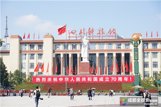 迎接新中国成立70周年 两万多面国旗红遍成都街头