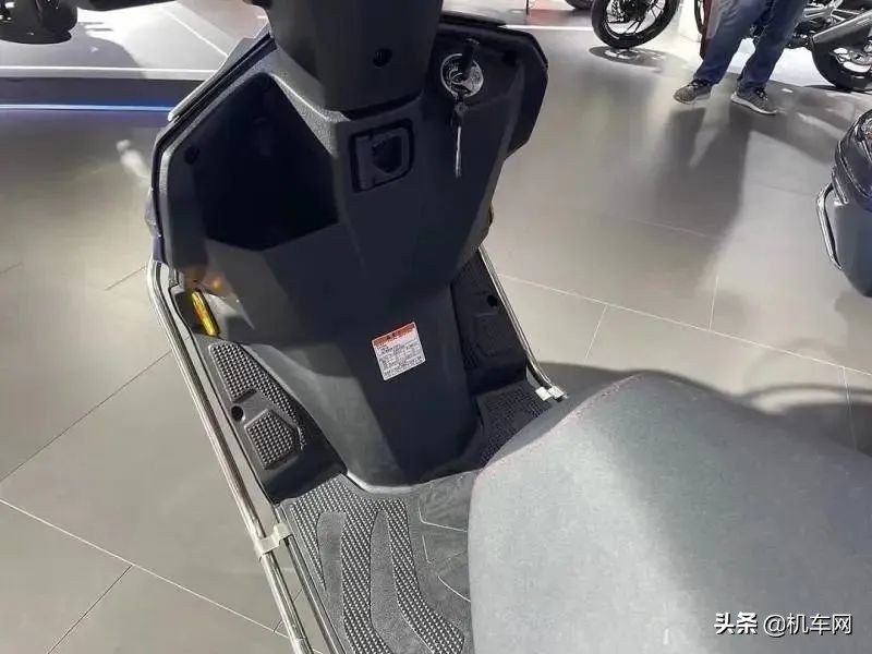 新款USR125的另一个改变就是前部置物箱,这个部分由过去传统的带锁设计,改成了如今主流的开放式方案,另外也加上了USB充电口;仪表显示部分也有优化,原本显示温度的地方调为实用性强一点的时间显示了。