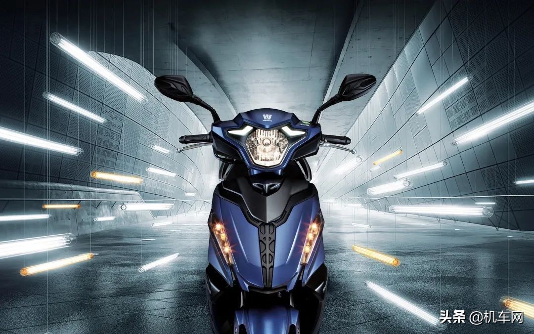 豪爵这款新踏板主要有两个部分做了改变处理,首先最明显的就是前脸部分的大灯,新款车型的前灯组由卤素灯泡升级成LED光源,新的大灯采用了流行的上下分层式设计。