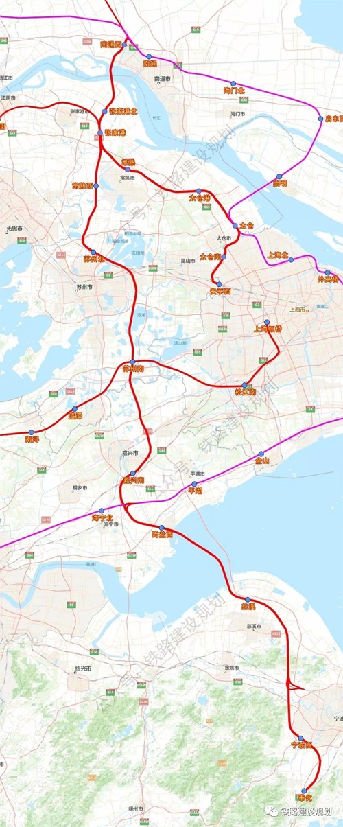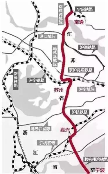 通苏嘉铁路项目起自南通,经张家港、常熟、苏州、吴江至嘉兴,跨越杭州湾后经慈溪至宁波,全长338公里。