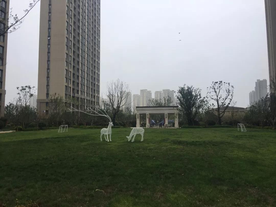 草坪西空地,目前只有一块大草坪,两个小球框,没有景观组团,雕塑,圆亭,供休息的石凳。
