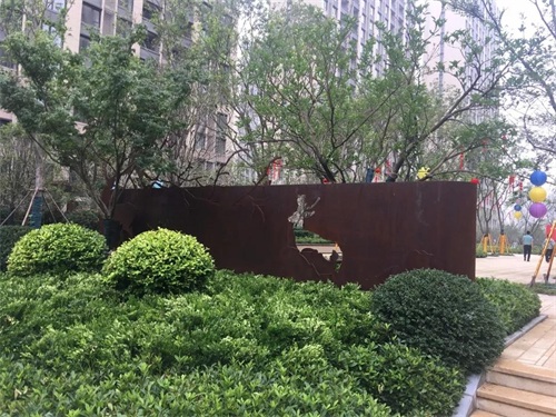 西门入口景墙是一块大铁皮,小编感觉不是特别美观。